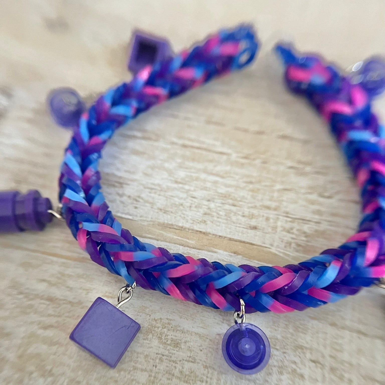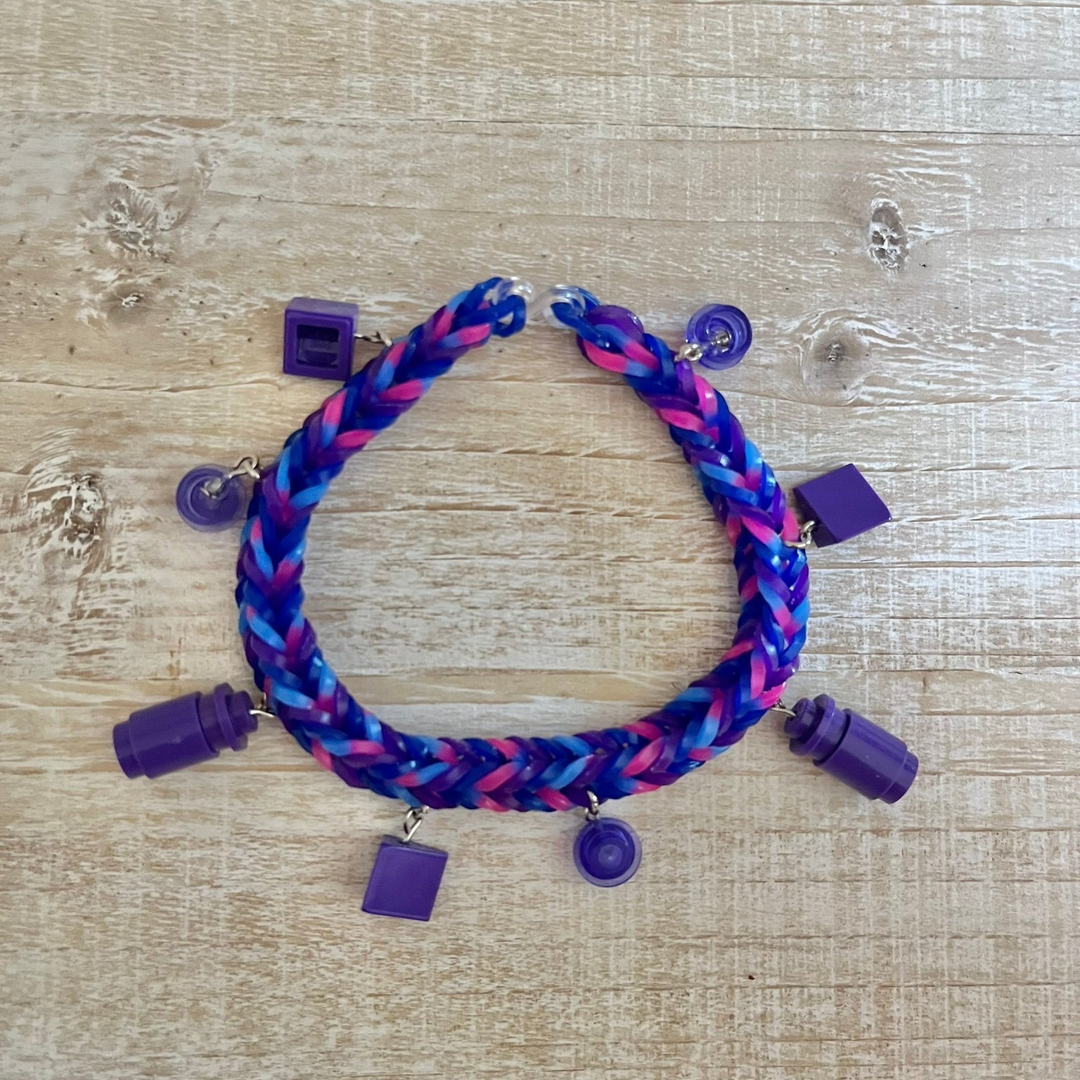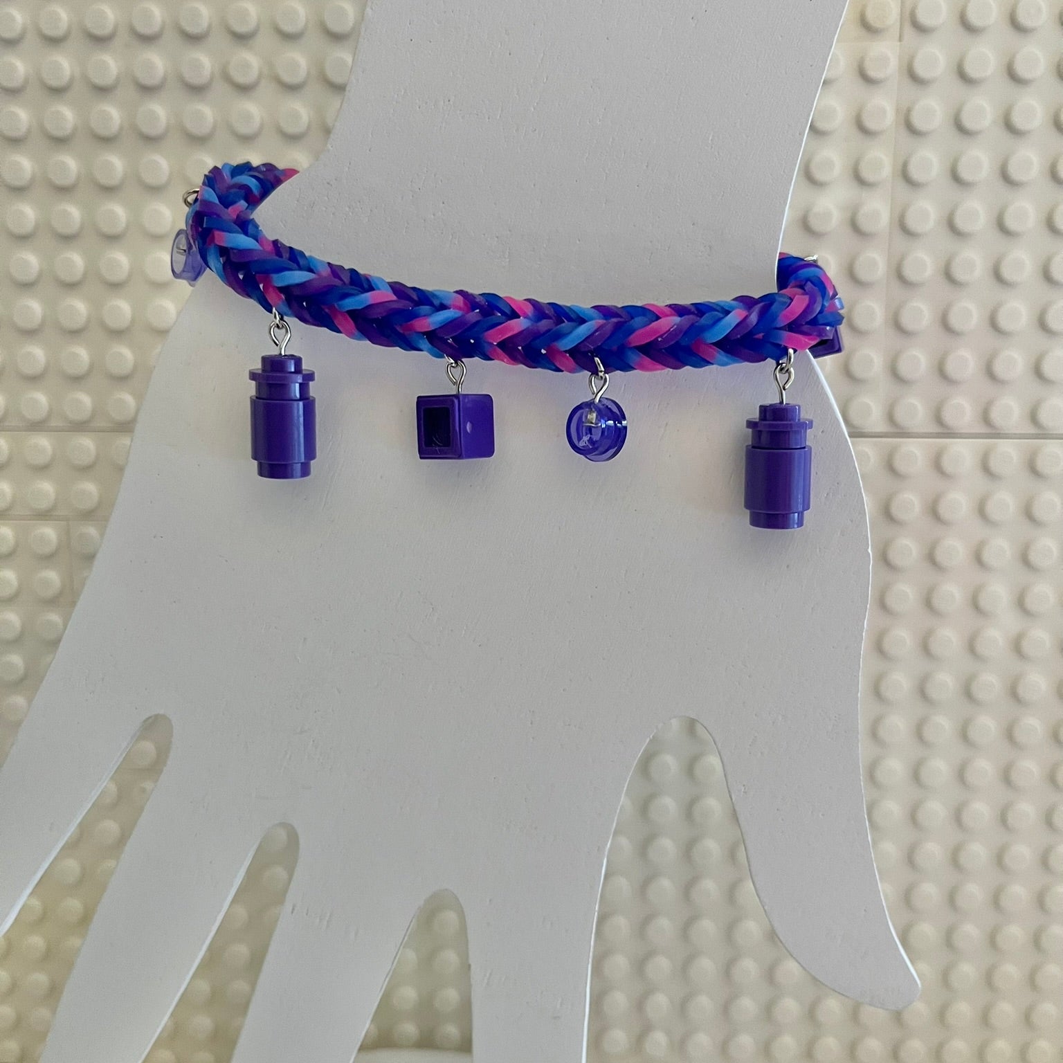 Rubber band bracelet with LEGO® studs and bricks as charms. Fits most adults and children. Charms may differ slightly in shape, but colors and look will stay the same.