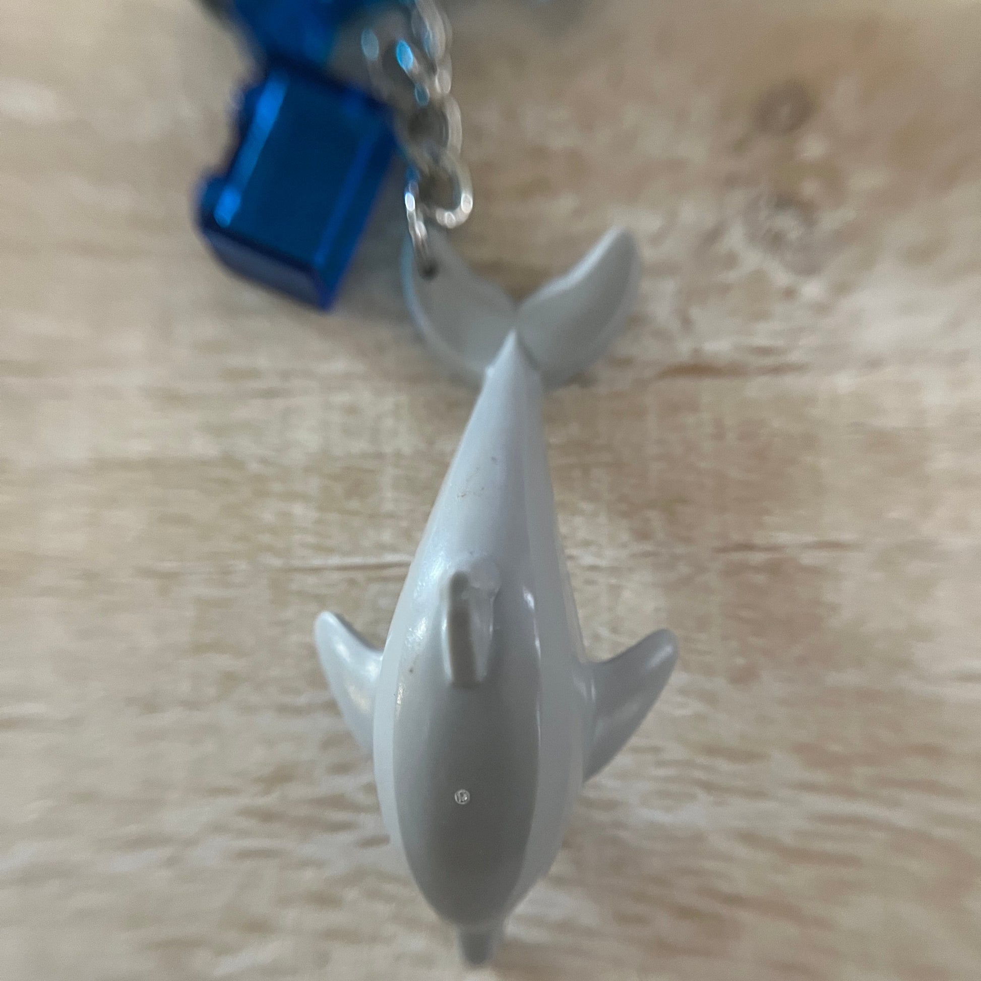 Lobster clasp keychain with a LEGO dolphin Also includes other LEGO components as charms.